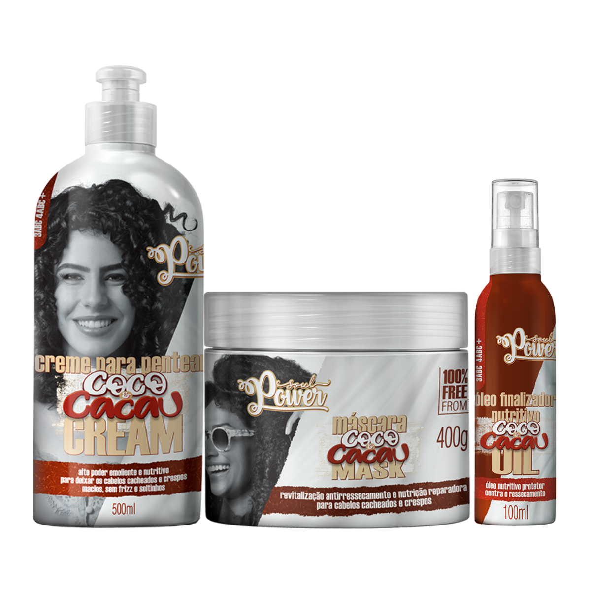 Soul Power Coco e Cacau Máscara + Creme p/ Pentear 500ml + Óleo