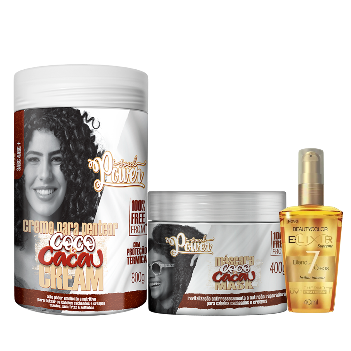 Soul Power Coco e Cacau Máscara + Creme p/ Pentear 800ml + Elixir Óleo