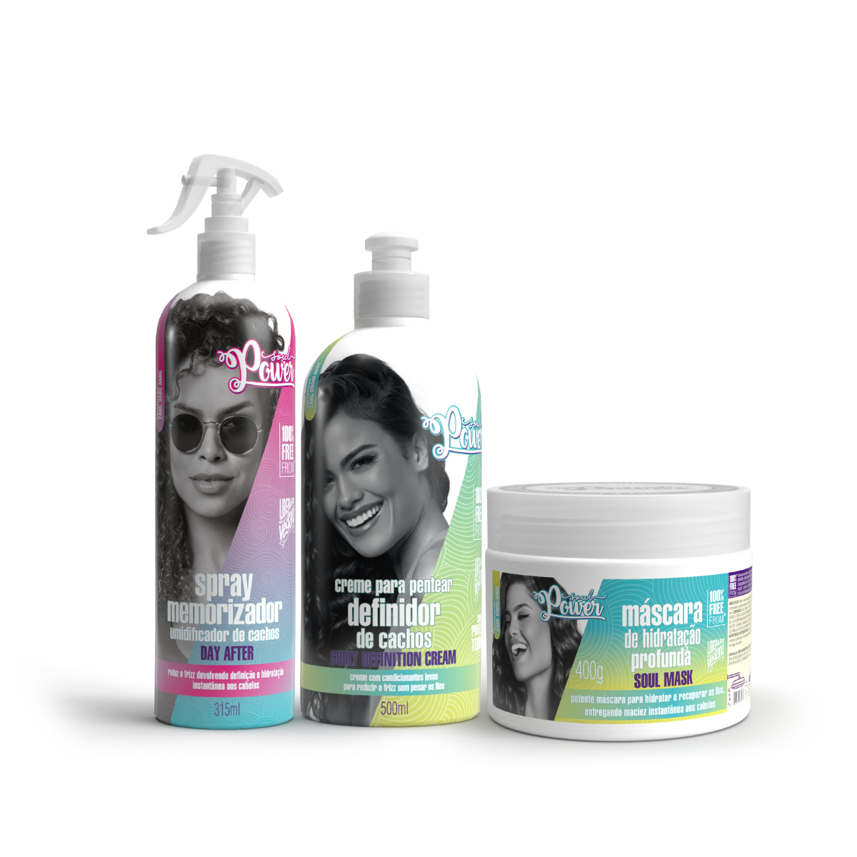 Soul Power Soul Mask Mascara 400g - 1/nSoul Power Curly Definition Cream Creme para Pentear 500ml - 1/nSoul Power Day After Umidificador Memorizador Spray 315ml - 1