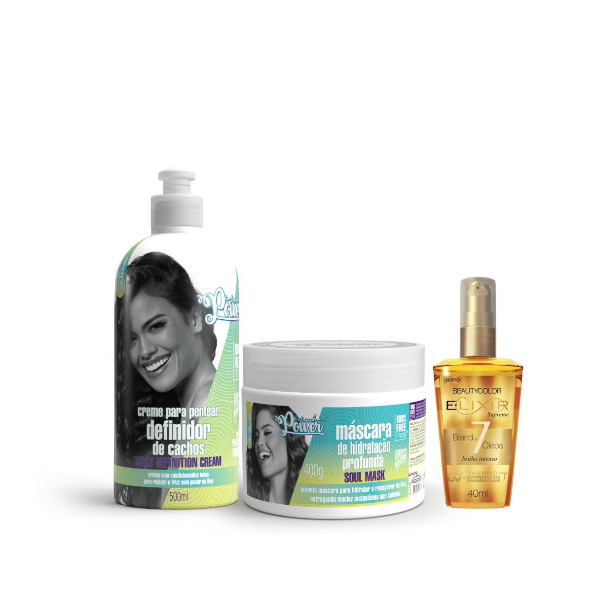 Soul Power Curly Definition Creme Pentear 500ml + Máscara + Elixir Óleo