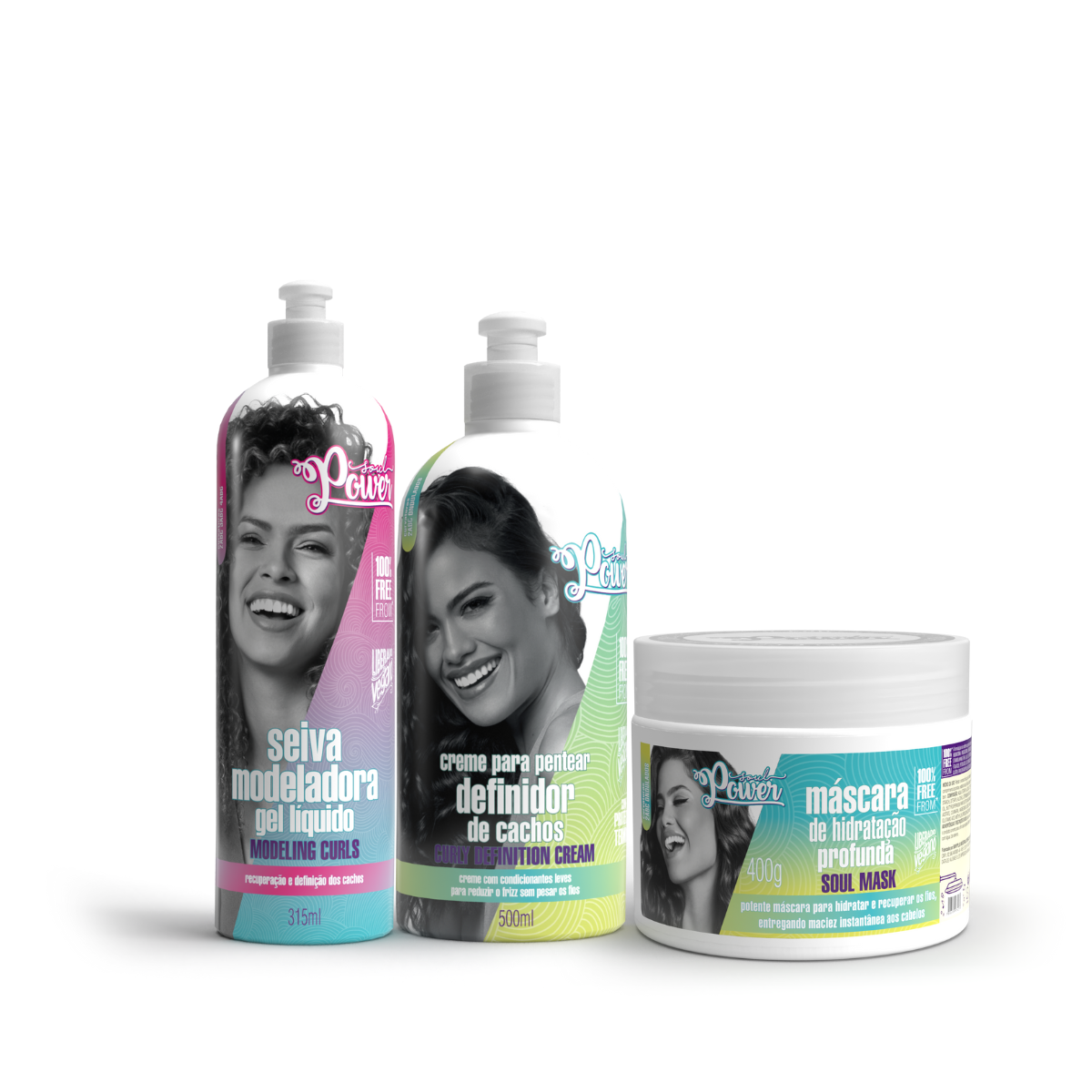 Soul Power Curly Definition Creme Pentear 500ml + Máscara Soul + Seiva Gel