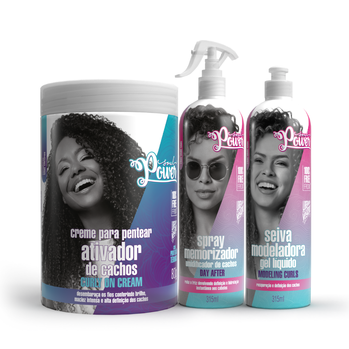 Soul Power Curly On Creme Pentear 800ml + Day After + Seiva Gel