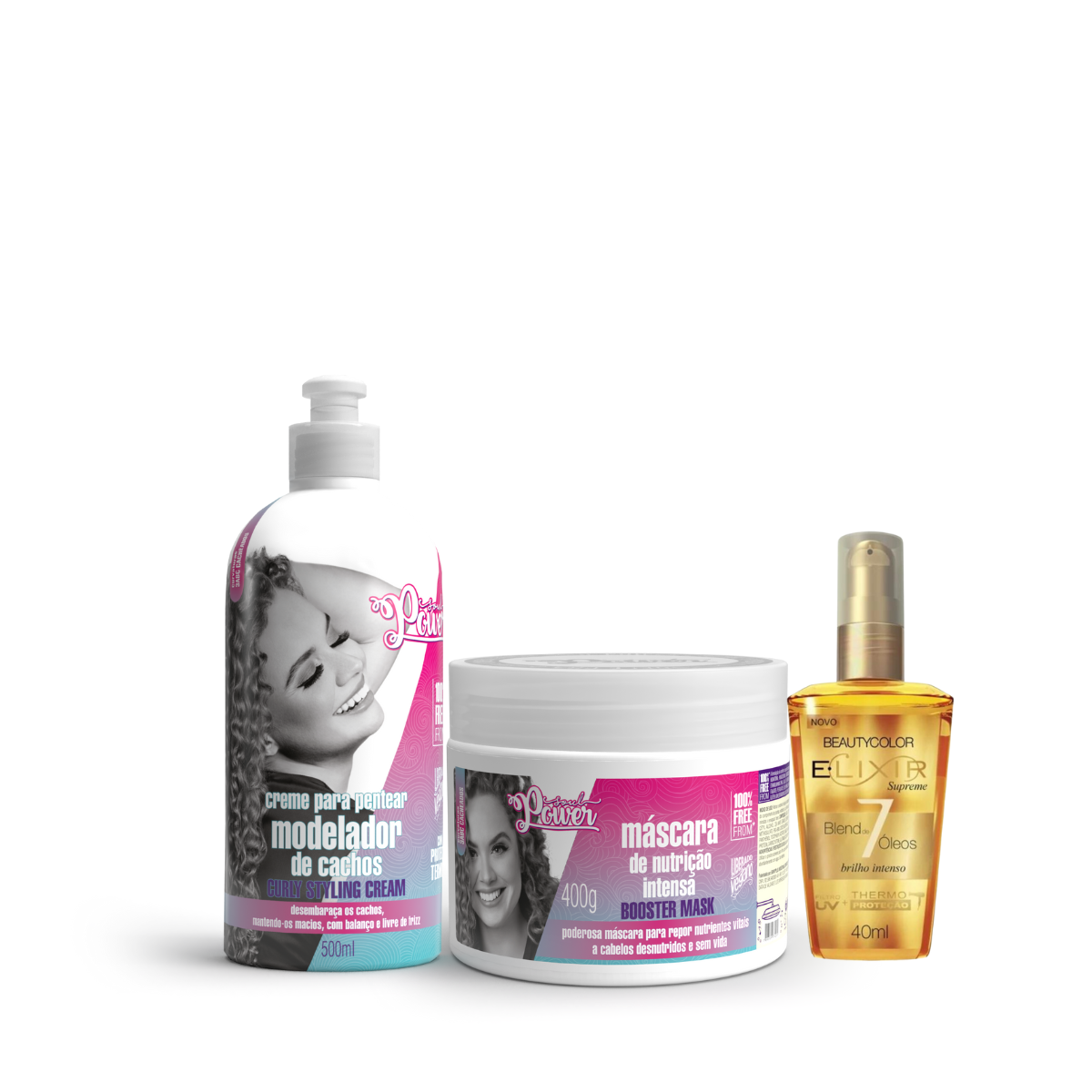 Soul Power Curly Styling Creme Pentear 500ml + Mascara + Elixir Óleo