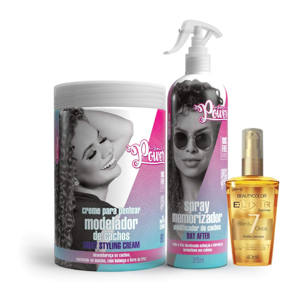 Soul Power Curly Styling Creme Pentear 800ml + Day After + Elixir Óleo