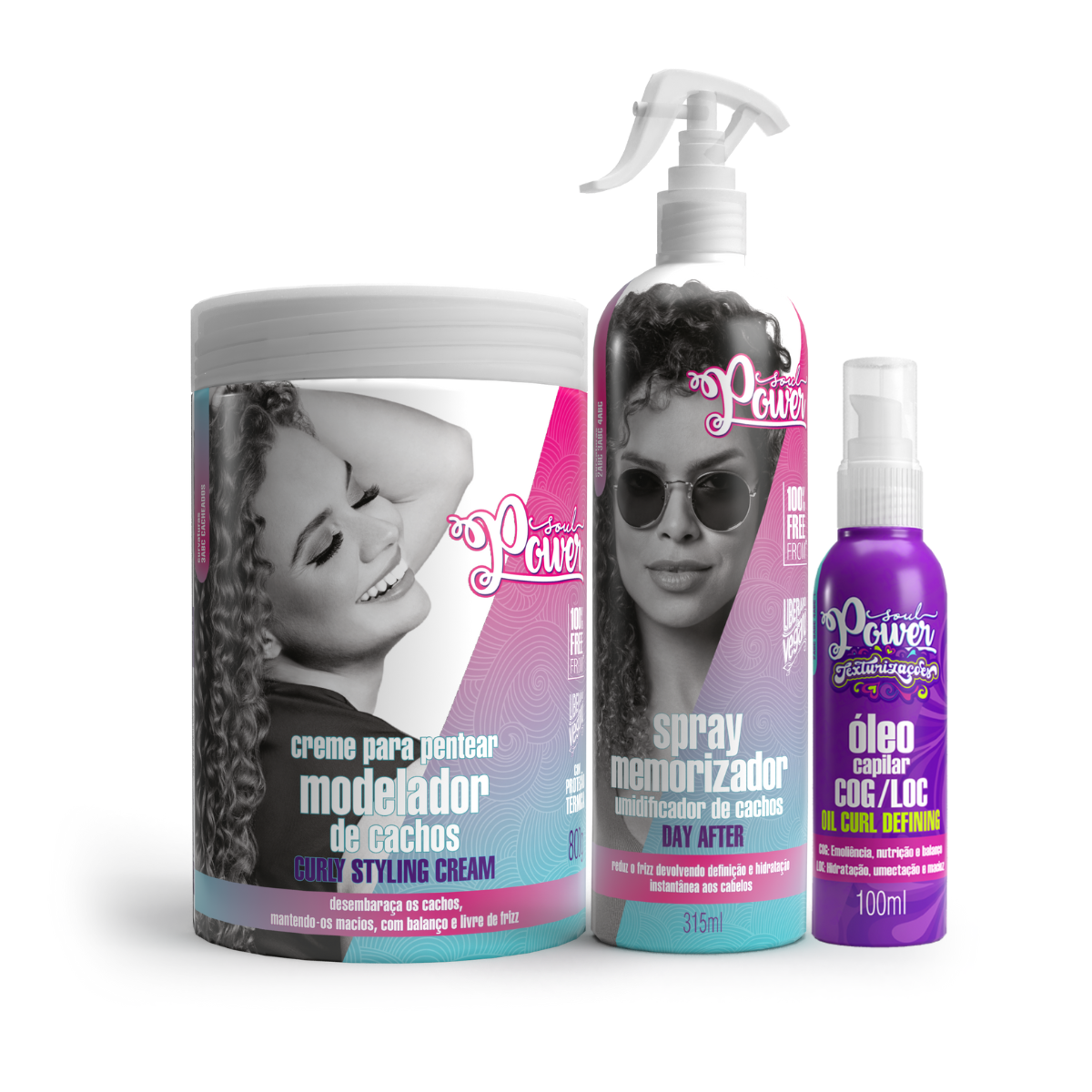 Soul Power Curly Styling Creme Pentear 800ml + Day After + Texturizações Óleo