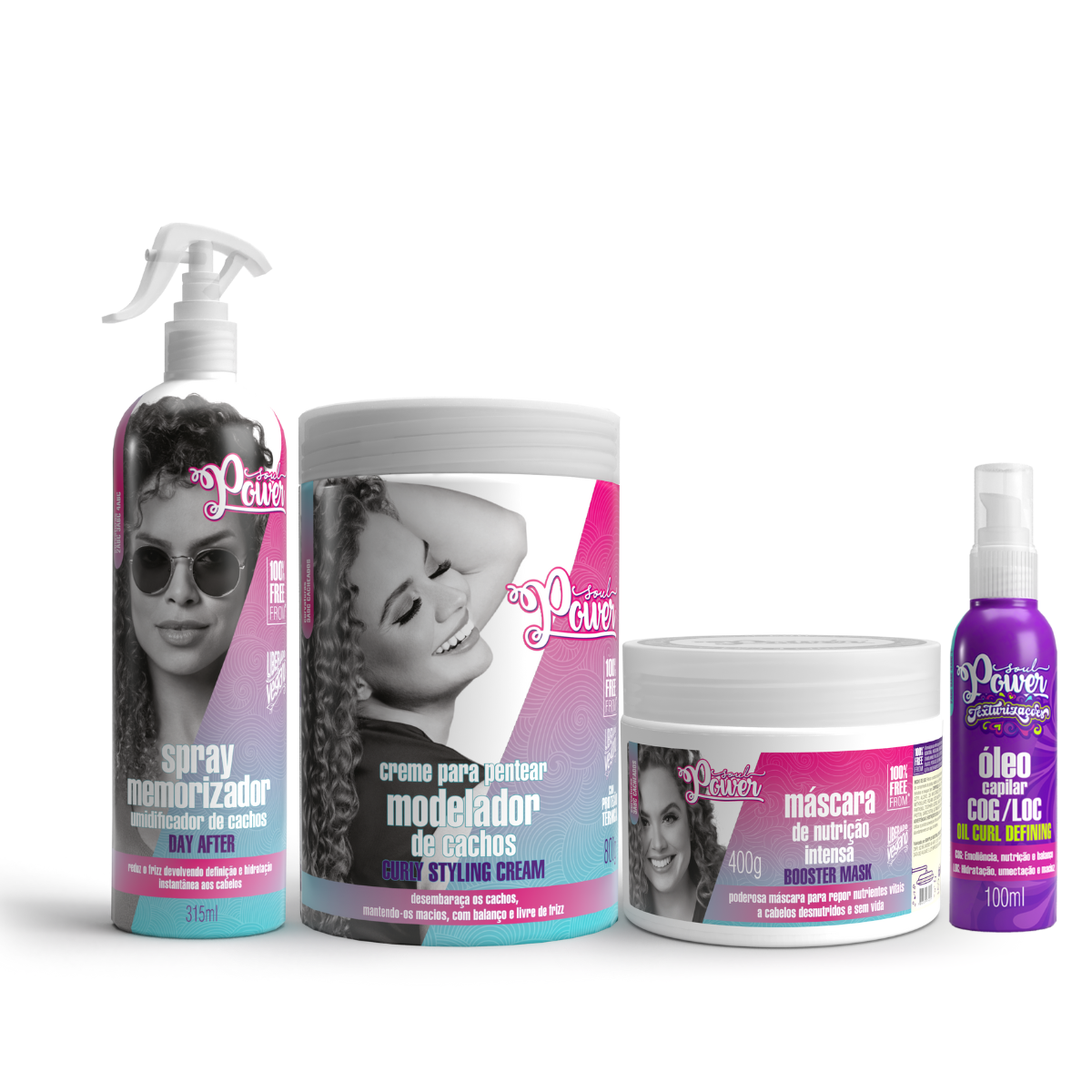 Soul Power Curly Styling Creme Pentear 800ml + Mascara + Day After + Texturizações Óleo