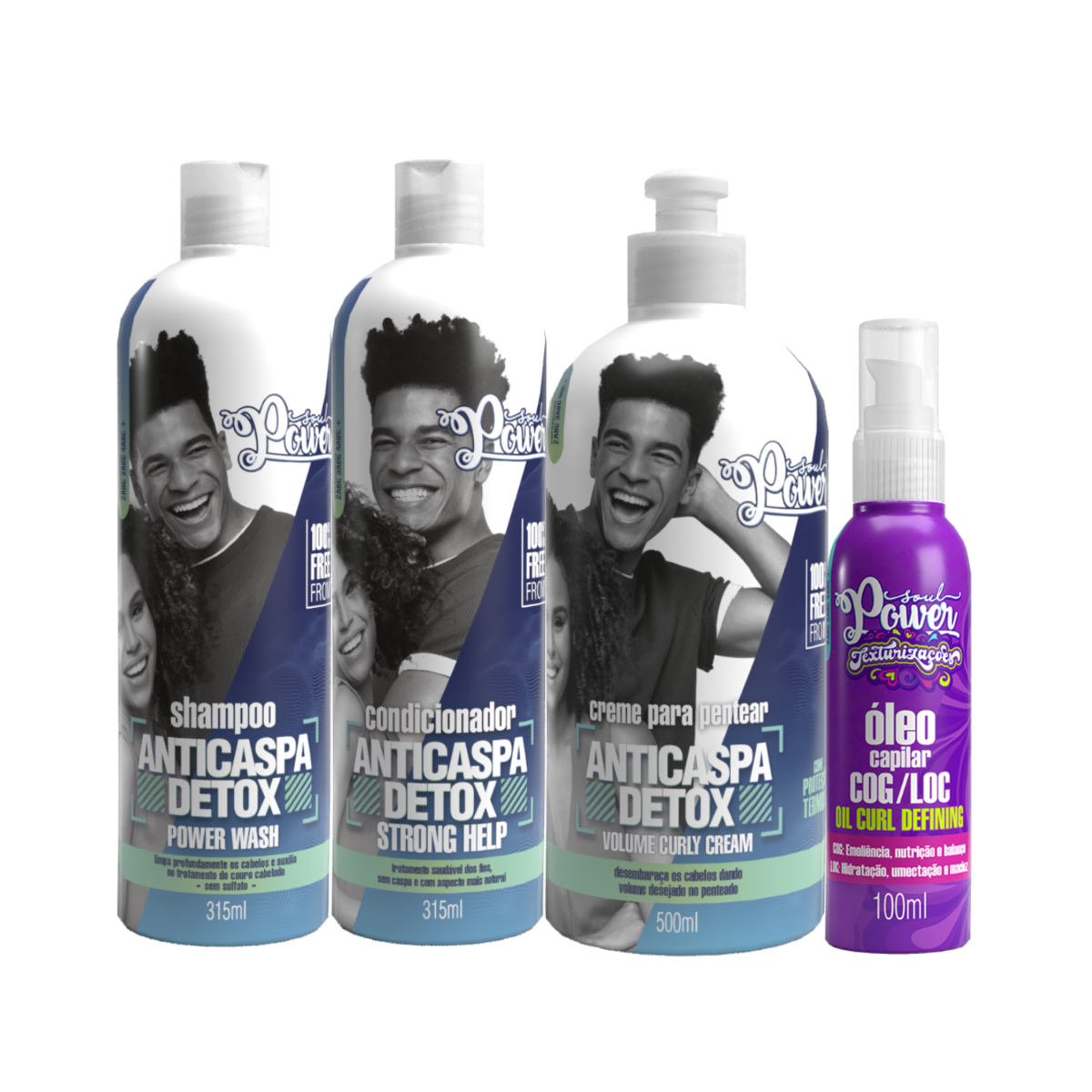 Soul Power Detox Shampoo + Condicionador + Creme Pentear 500ml + Texturizações Óleo