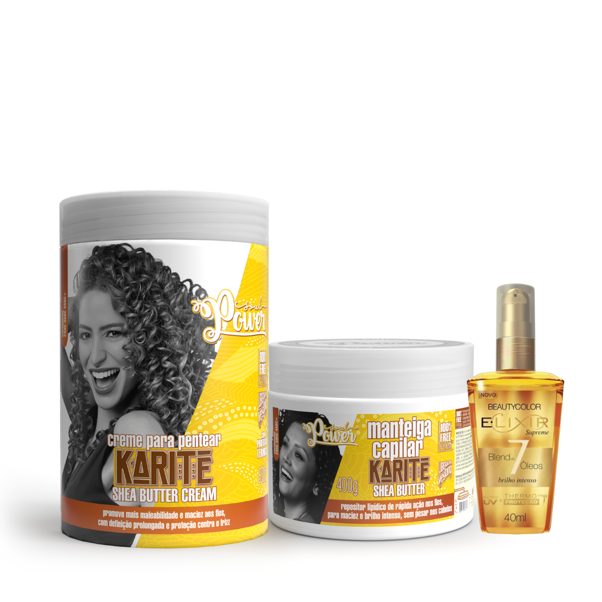 Soul Power Karite Shea Mascara + Creme Pentear 800ml + Elixir Óleo