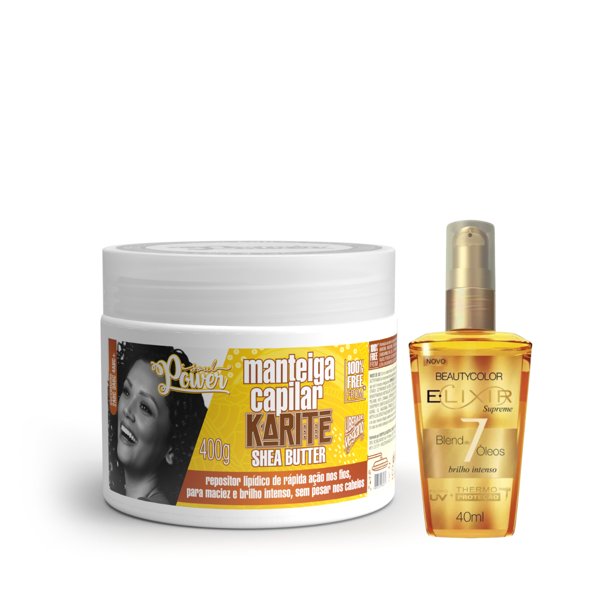 Soul Power Karite Shea Mascara + Elixir Blend 7 Óleos Brilho Intenso