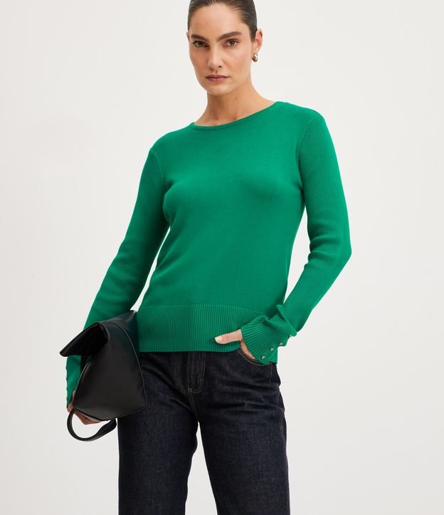 Suéter Alongado em Tricô com Manga Longa