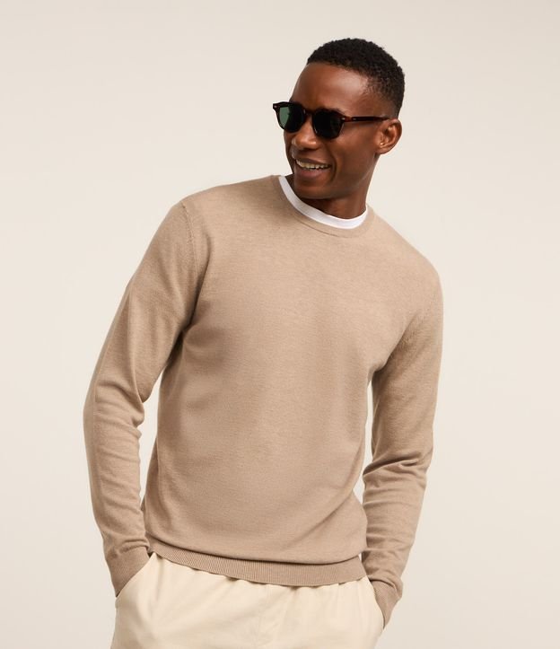 Suéter Básico em Efeito Tricô com Acabamento Canelado Marrom