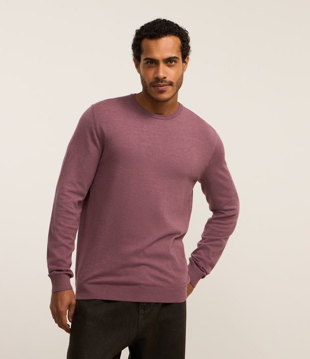 Suéter Básico em Efeito Tricô com Acabamento Canelado Roxo
