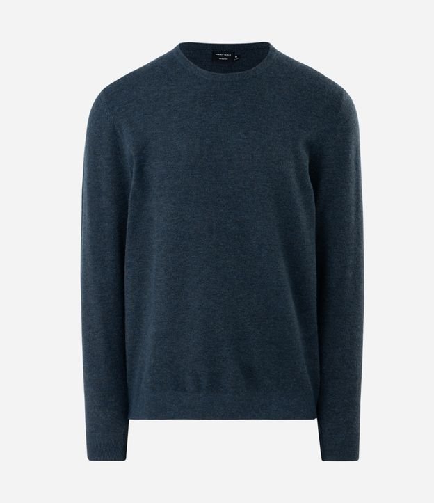 Suéter Básico em Efeito Tricô com Acabamento Canelado Azul Noite