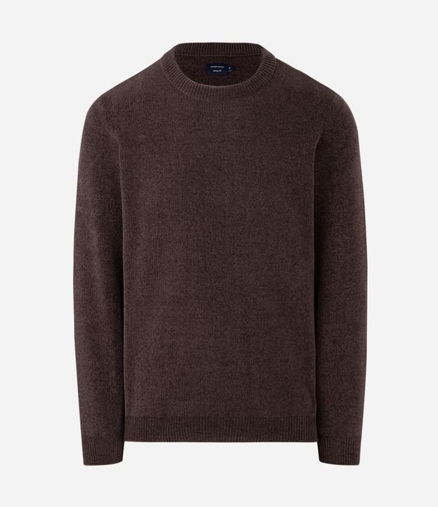 Suéter Básico em Fleece com Felpa Texturizado Marrom Escuro