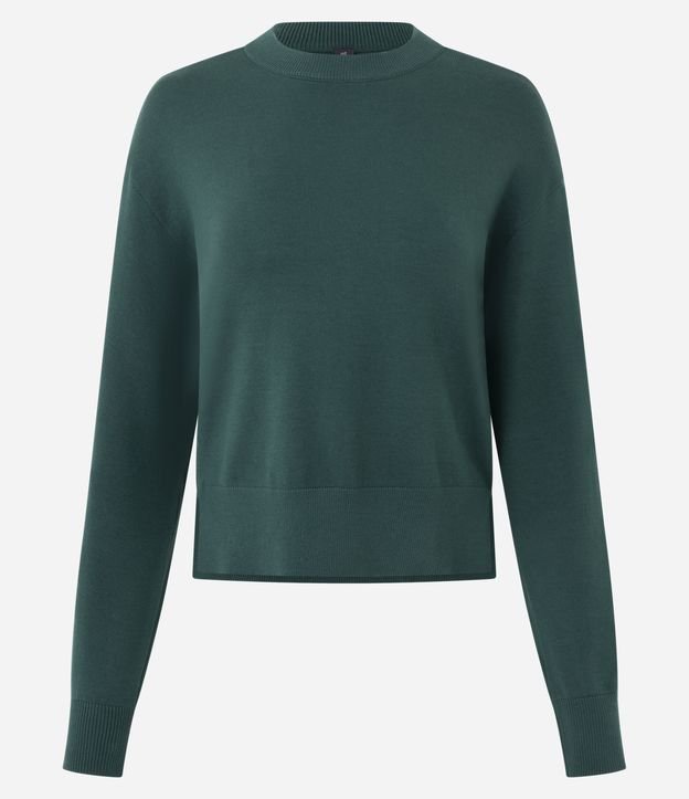 Suéter Boxy em Tricô com Gola e Punhos Canelados Verde