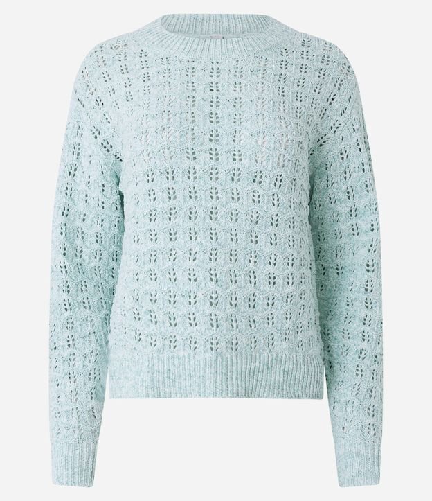 Suéter Curto em Chenille com Ponto Aberto de Ondinha