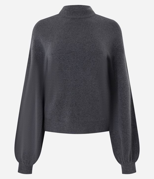 Suéter Curto em Tricô com Golinha Cinza Escuro