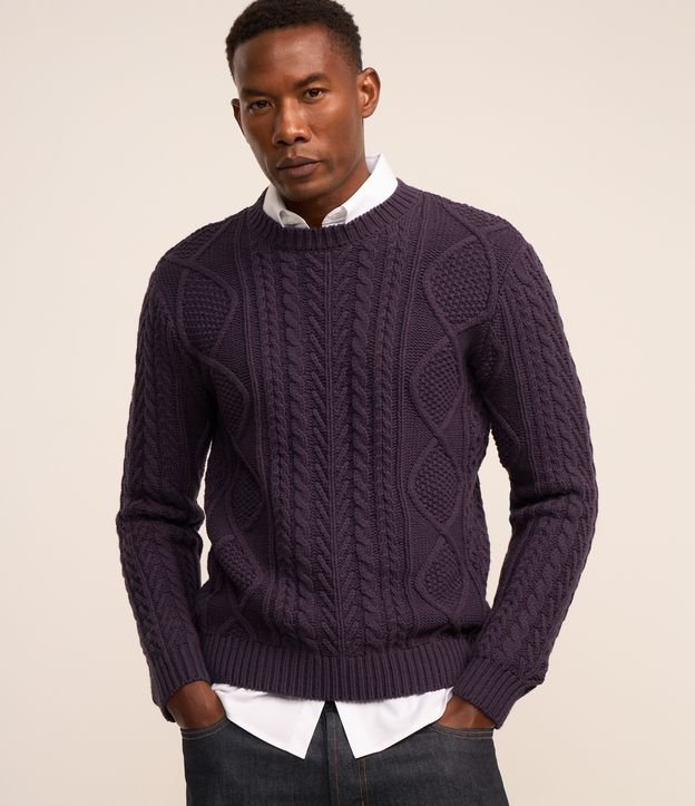 Suéter em Algodão e Textura Roxo