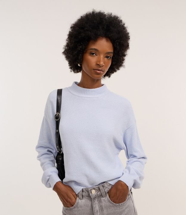 Blusão suéter em chenille com golinha alta. Possui ribanas nos punhos, gola e barra.