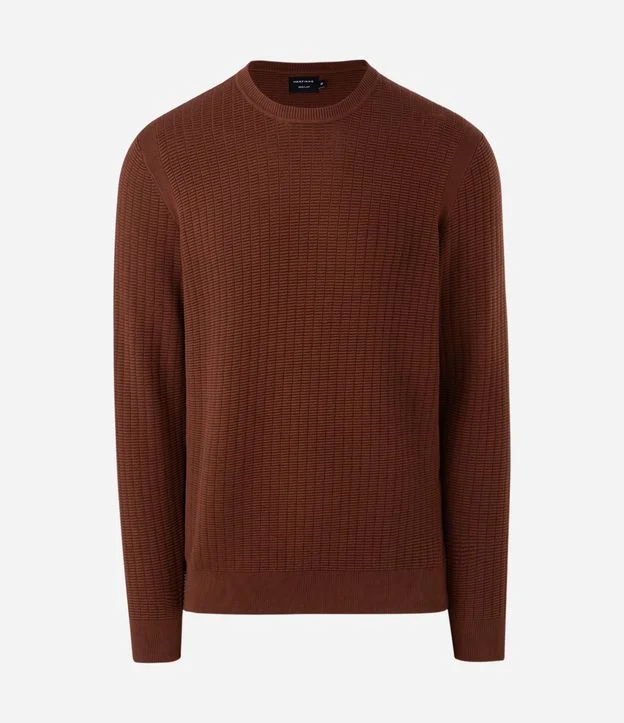Suéter em Malha com Textura Xadrez Grid Marrom