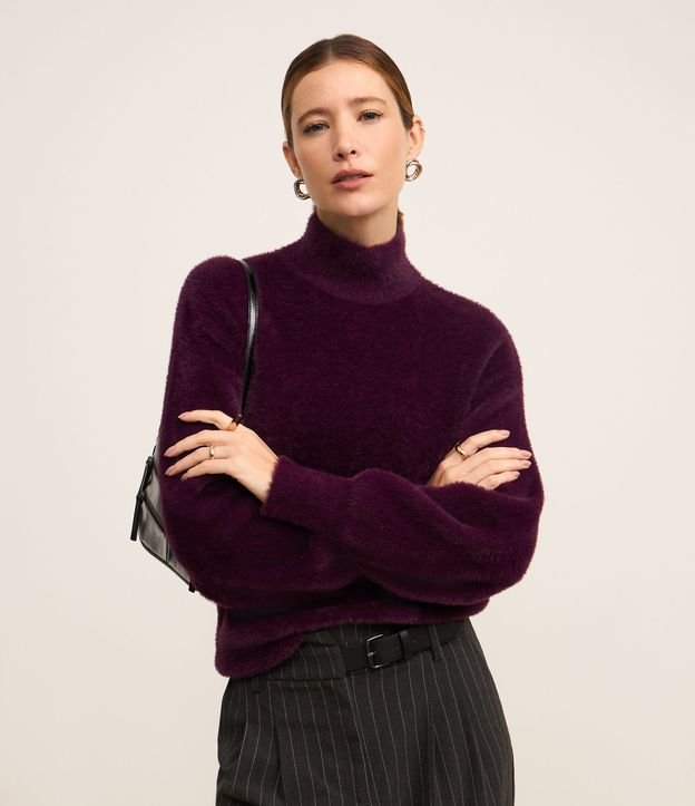 Suéter em Poliamida Peluciada com Gola Alta Vinho