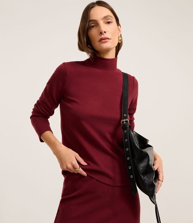 Suéter de golinha alta, confeccionado em tricô com viscose mais sustentável com mangas longas. Esta blusa de frio possui malha levemente mesclada.