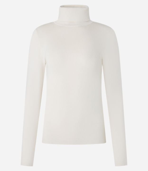 Suéter em Tricô com Gola Alta Estruturada Off White