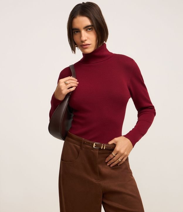 Suéter em Tricô com Gola Alta Estruturada