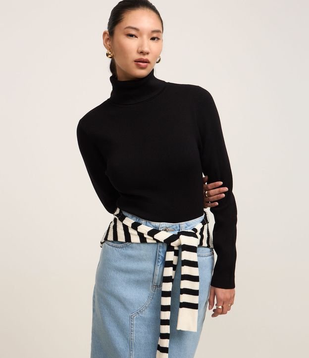 Suéter em Tricô com Gola Alta Estruturada Preto