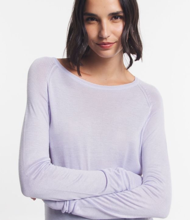 Suéter em tricô, com gola redonda, mangas longas e sem estampa.