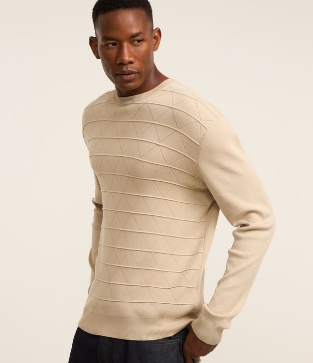 • Suéter Regular em Tricô com Gola Redonda Bege 3