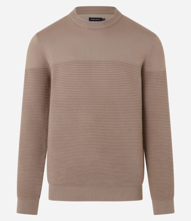 Suéter em Tricô com Textura em Nervuras Marrom Claro