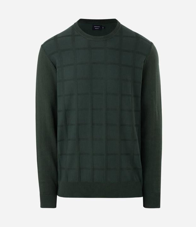 Suéter em Tricô com Textura Quadriculada Verde escuro