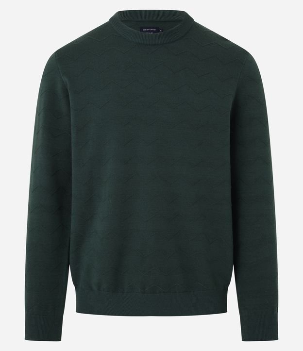 Suéter masculino confeccionado em tricô mais sustentável, com gola redonda, manga longa e textura zig zag.