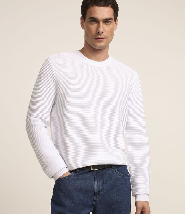 Suéter em Tricô Leve com Texturas Horizontais Branco