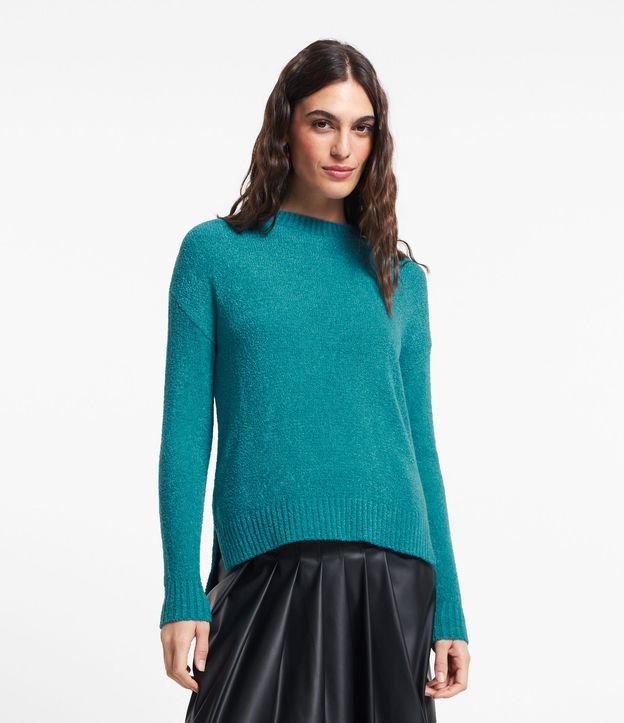 Blusão suéter em tricô texturizado com gola redonda, sem estampa. Para looks elegantes e cheios de personalidade, aposte nessa peça como curinga, pois além de charmoso é quentinho, o item é aconchegante e superversátil.
