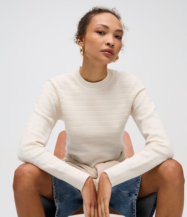Suéter em Tricô Texturizado com Golinha Bege