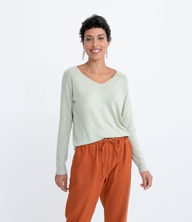 Suéter Gola V em Tricô Sem Estampa
