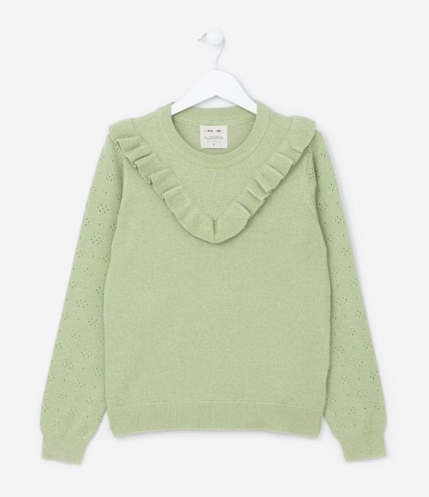 Suéter Infantil com Babados e Fio Brilhante - Tam 5 a 14 Anos Verde