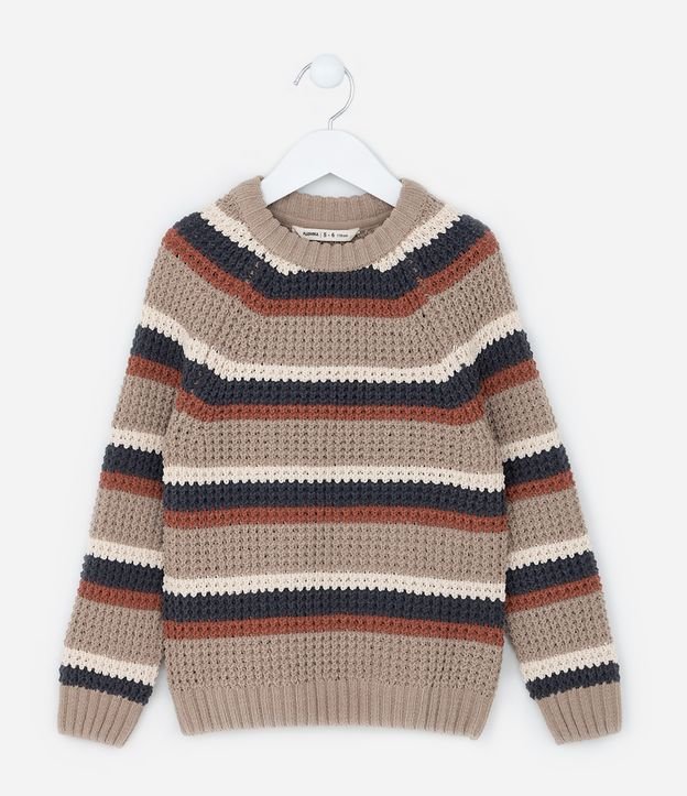 Suéter Infantil em Chenille com Estampa de Listras - Tam 5 a 14 Anos
