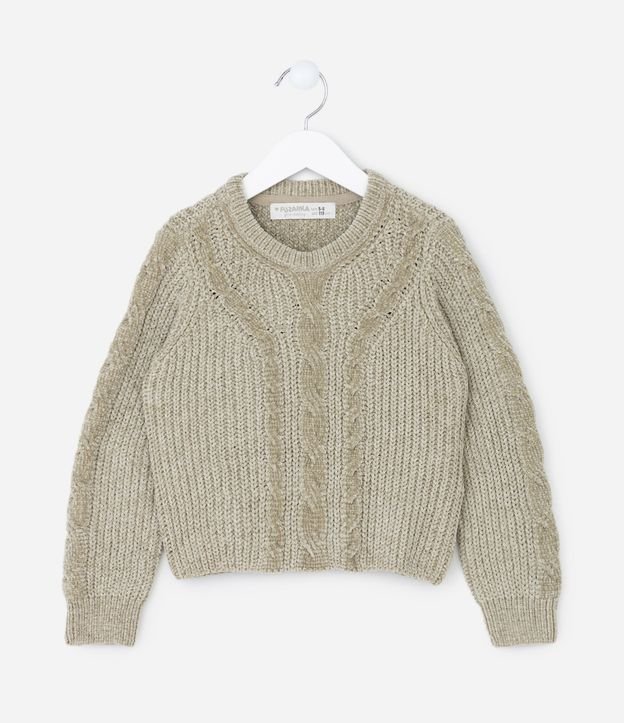 Suéter Infantil em Chenille com Fio Metalizado - Tam 5 a 14 Anos Bege