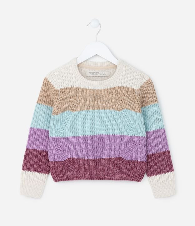 Suéter Infantil em Chenille com Listras - Tam 5 a 14 Anos