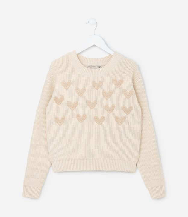 Suéter Infantil em Tricô com Bordado de Corações - Tam 5 a 14 Anos