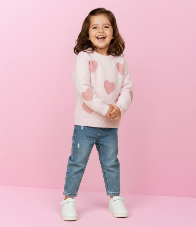 Suéter Infantil em Tricô com Corações Aplicados – Tam 1 a 5/6 Anos