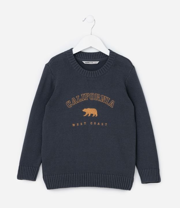Suéter Infantil em Tricô com Estampa Urso Califórnia - Tam 5 a 14 Anos