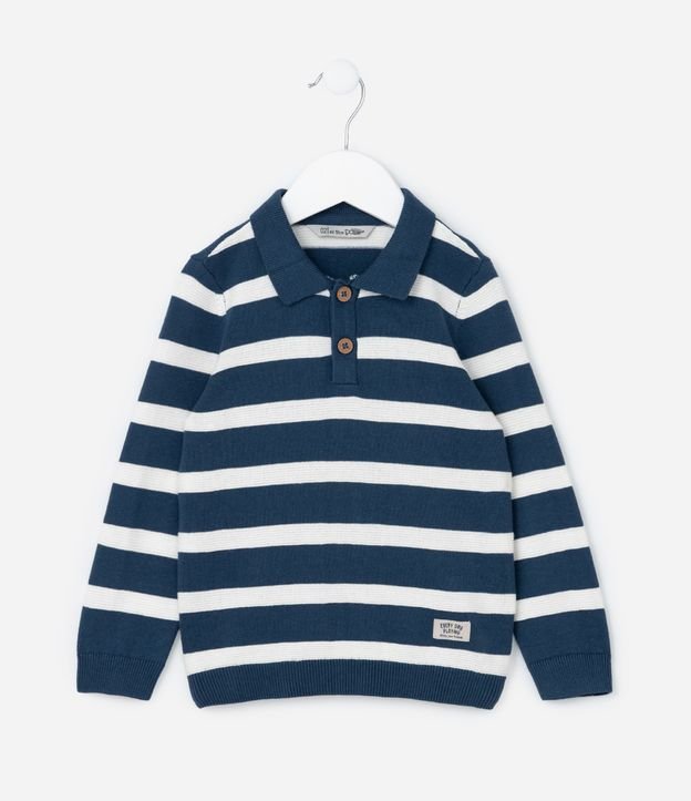 Suéter Infantil em Tricô com Gola Polo e Listras - Tam 1 a 5 Anos