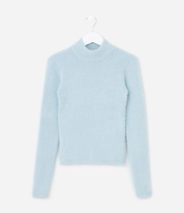 Suéter infantil confeccionado em tricô peludinho, ideal para os dias mais frios. Possui gola alta, manga longa e sem estampa.