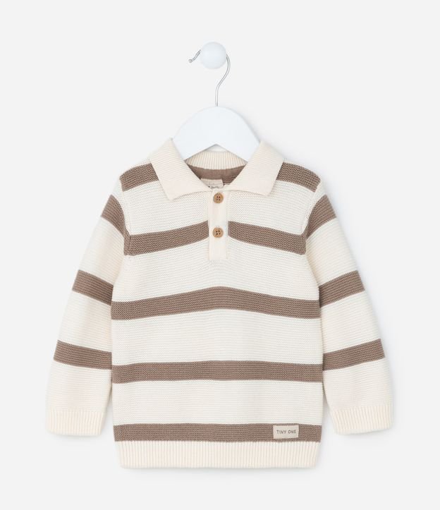 Suéter Infantil em Tricô Listras e Etiqueta na Barra - Tam 0 a 18 meses Bege