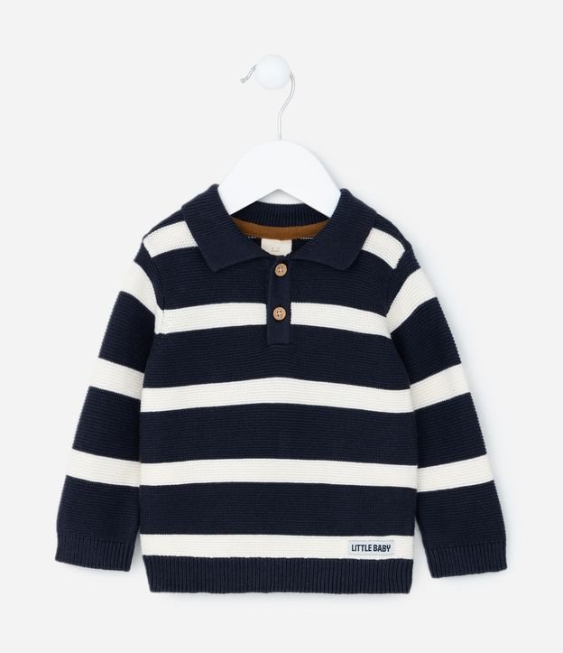 Suéter Infantil em Tricô Listras e Etiqueta na Barra - Tam 0 a 18 meses Azul