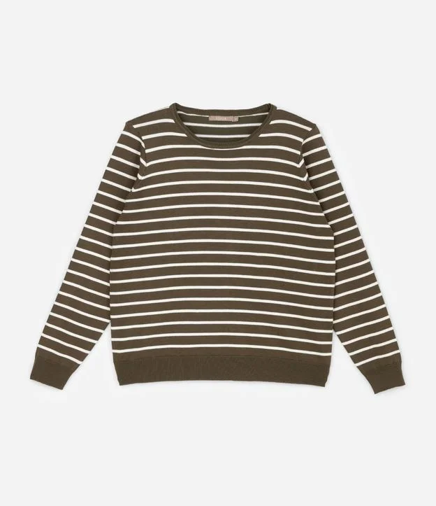 Suéter Regular em Tricô com Listras Curve & Plus Size Verde